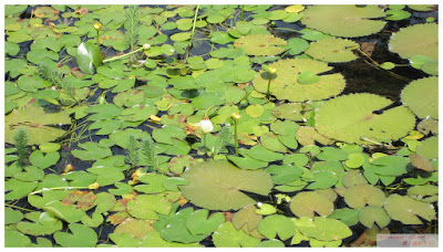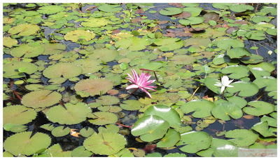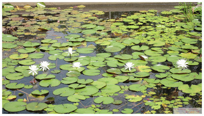 松園有一種喚醒遊人心中「緩慢」的力量,並樂於對陌生的朋友,敞開心胸。我沿著走廊緩步研究水池。有人拿著幾張明信片走近,對我說:「這是松園獎勵騎自 行車的遊客送的。」正神遊的我驚醒,為這突如其來的禮物感到驚喜也不解:他怎麼知道我騎車來的哩?然後想起自己豪邁地停車的同時,有輛松園的車子也緩緩停 妥。原來,自己觀察他人的同時,也被觀察著。他見我正望著水池發呆,便挑了水池的明信片遞到手上。我都還沒想好要哪一張呢!那藻荇交錯的池溏,就這樣到了 手上。事後對照自己拍攝的池塘,我不得不承認:我在每一個畫面中,尋找寧定的力量,動態的靜謐。